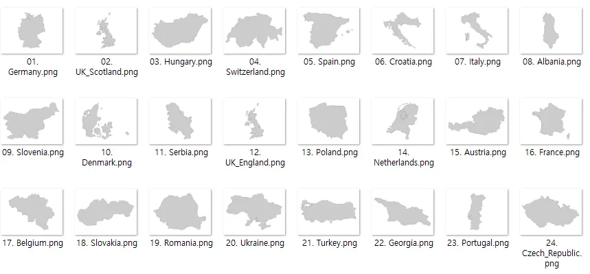 각 국가의 이미지를 구글에서 하나씩 찾을 수 있겠지만 이미지의 일관성이 부족하거나 무료 사용이 가능하지 않은 이미지가 대부분일 것입니다.