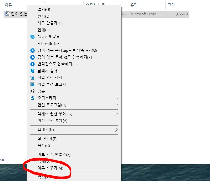 복사본 파일을 우클릭하여 “이름 바꾸기(M)”을 클릭